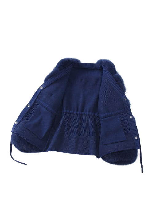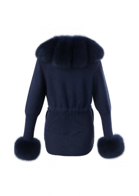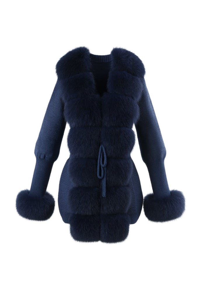 A cosy rib-knit sweater elevated with a detachable fox-fur collar for a luxe, versatile finish. Soft, warm and effortless for everyday winter styling.