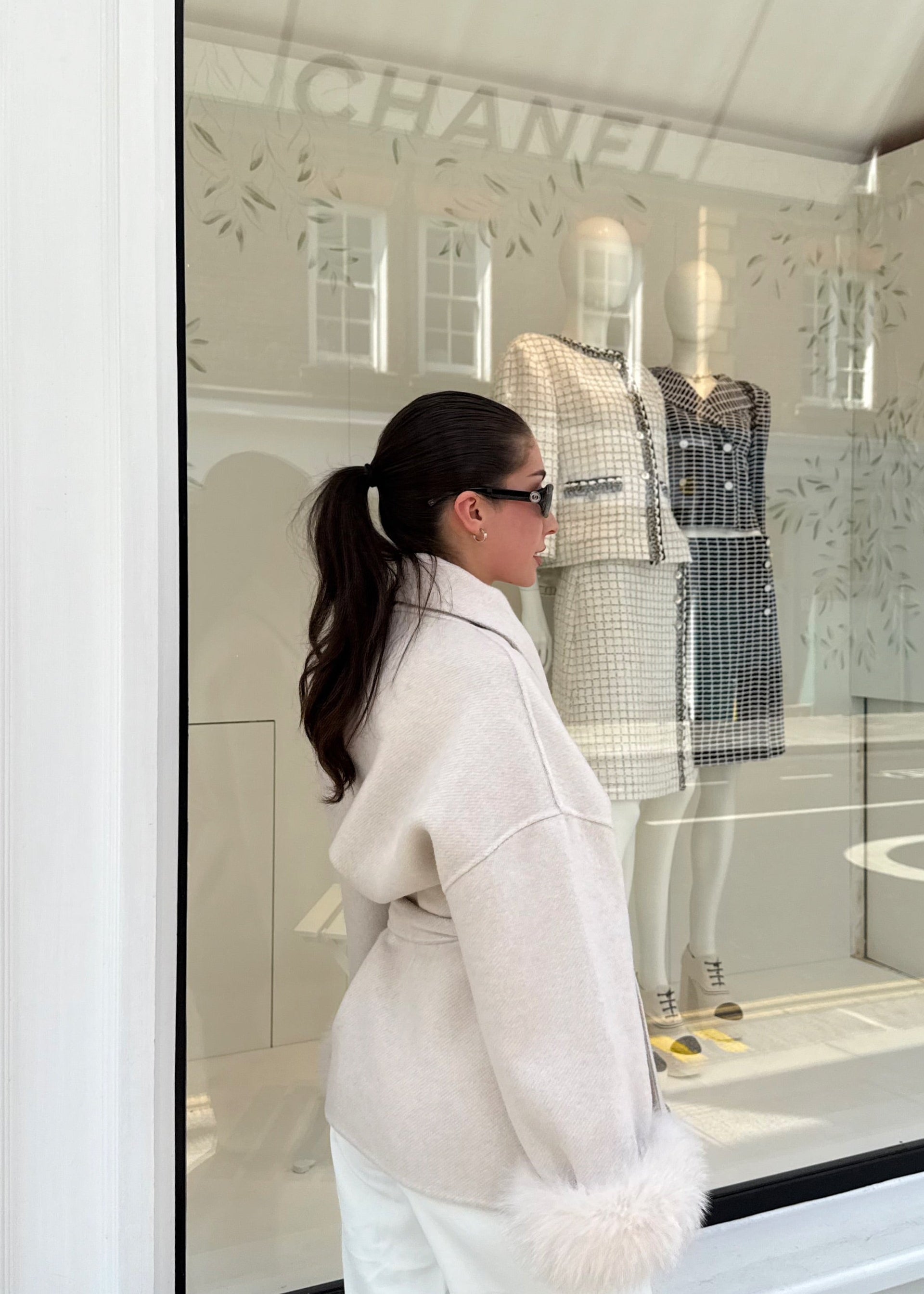 Effortlessly versatile — wear it your way. Style with or without the luxurious fur cuffs and belt to create three luxury looks that suit any mood or occasion.