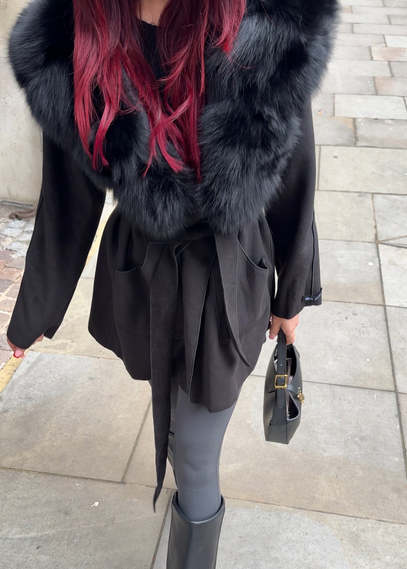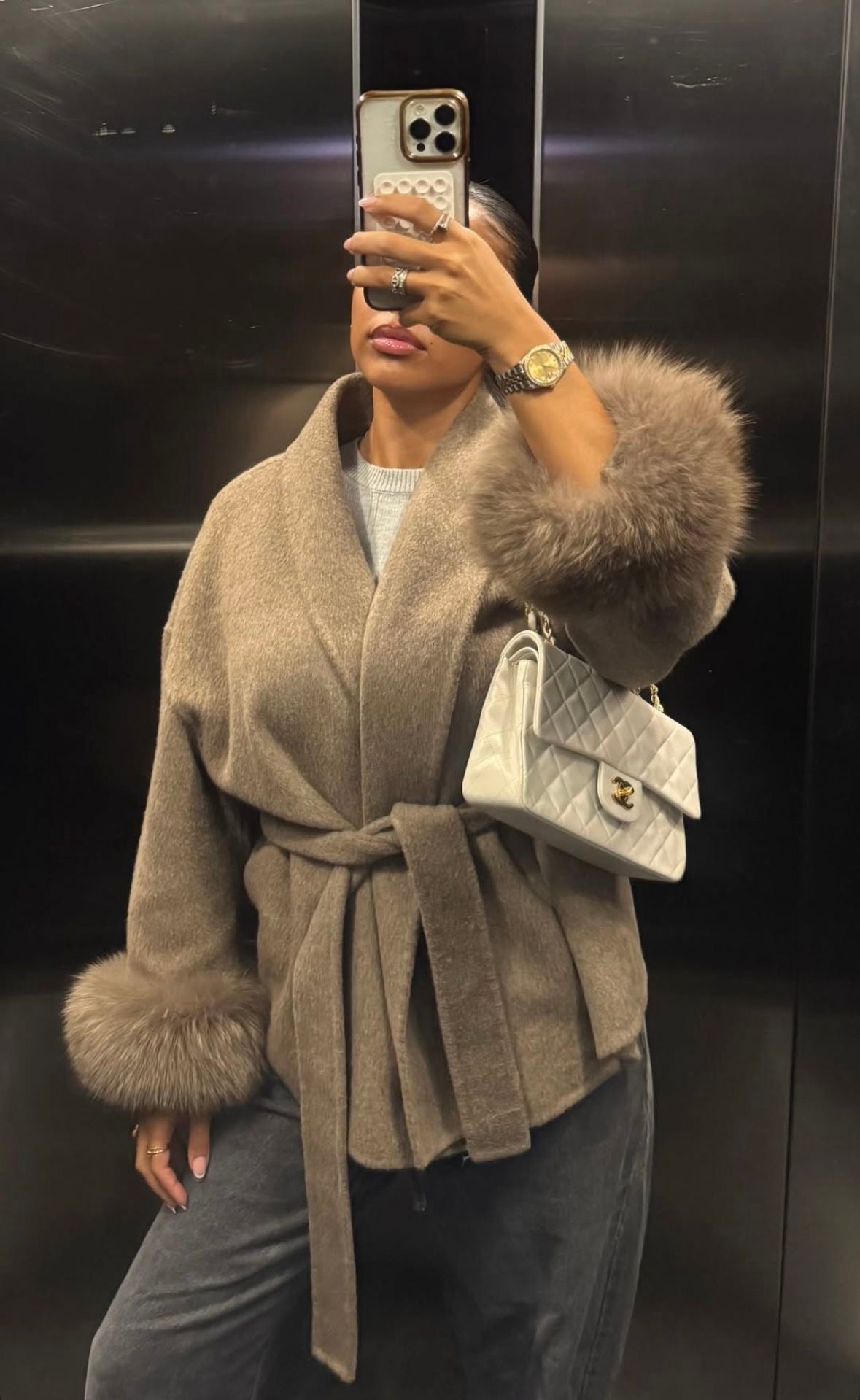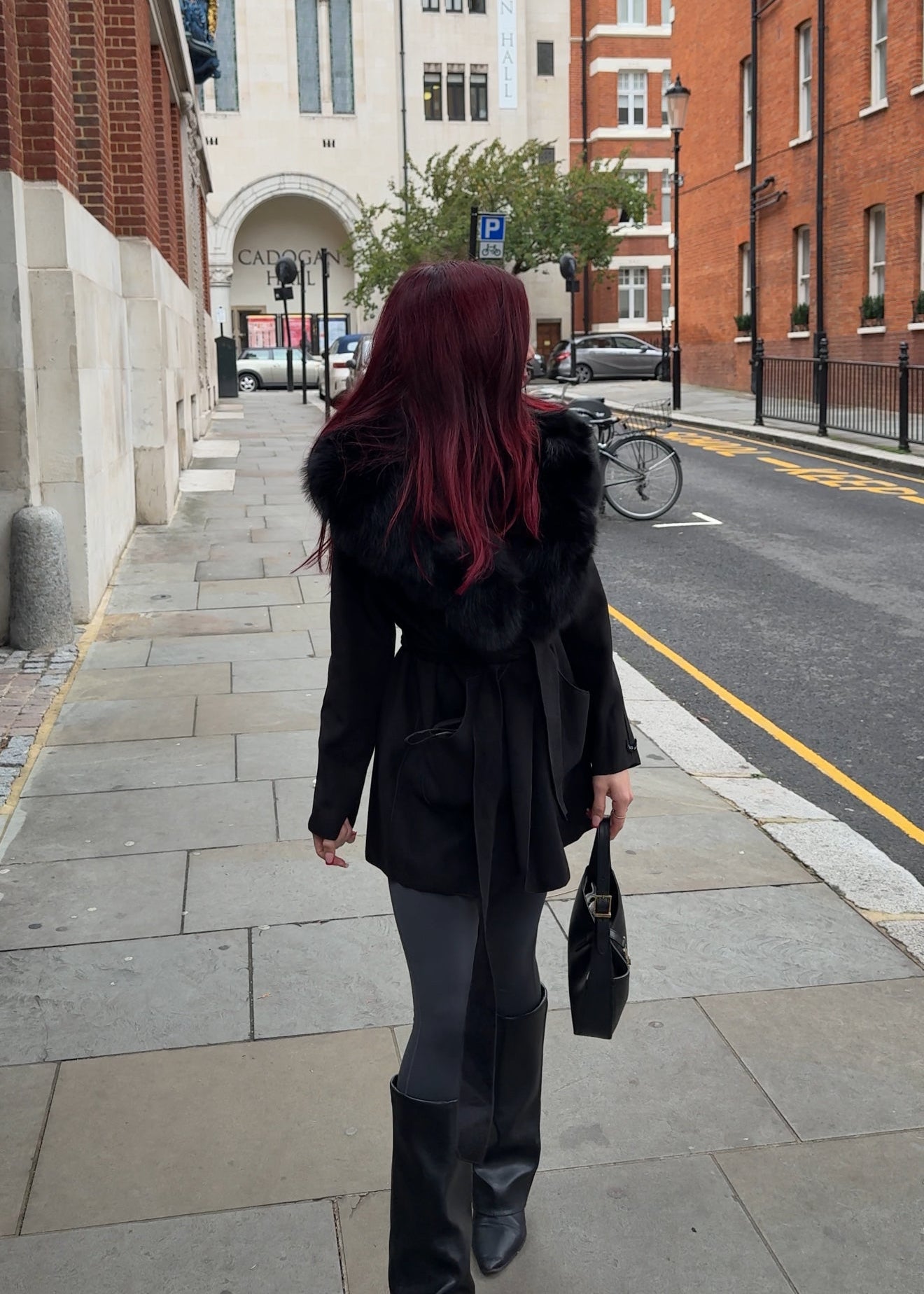 This fur coat is a showstopper. The dark,rich fur glistens subtly under night-time lights, making it perfect for evening events. It fits beautifully, hugging the right places while still warm.